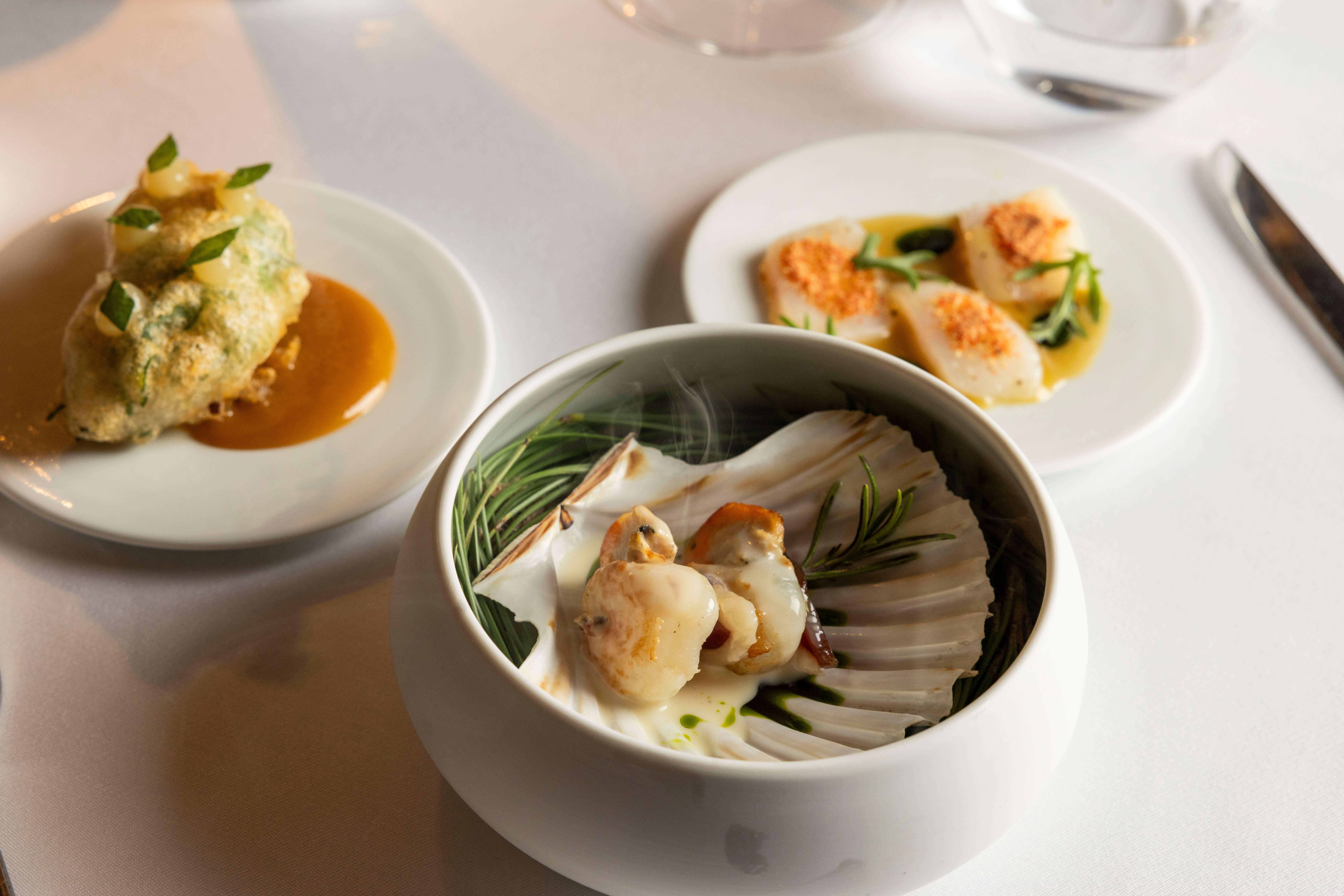 The menu evolves three times a year, not dramatically, but with subtle shifts that reflect the season and the chef’s ongoing exploration. Certain creations, however, have become defining signatures. The risotto with basil pesto, tomato, and a combination of raw and cooked seafood stands out for its depth and precision—a dish where richness is carefully controlled, never overwhelming. A delicate chawanmushi introduces a more unexpected reference, while the monkfish Wellington reinterprets a classic format with elegance and restraint. There is a sense of discipline throughout the kitchen’s approach. Flavours are clear, compositions measured, and creativity never forced. The result is a cuisine that feels confident without being declarative—one that invites attention rather than demands it.