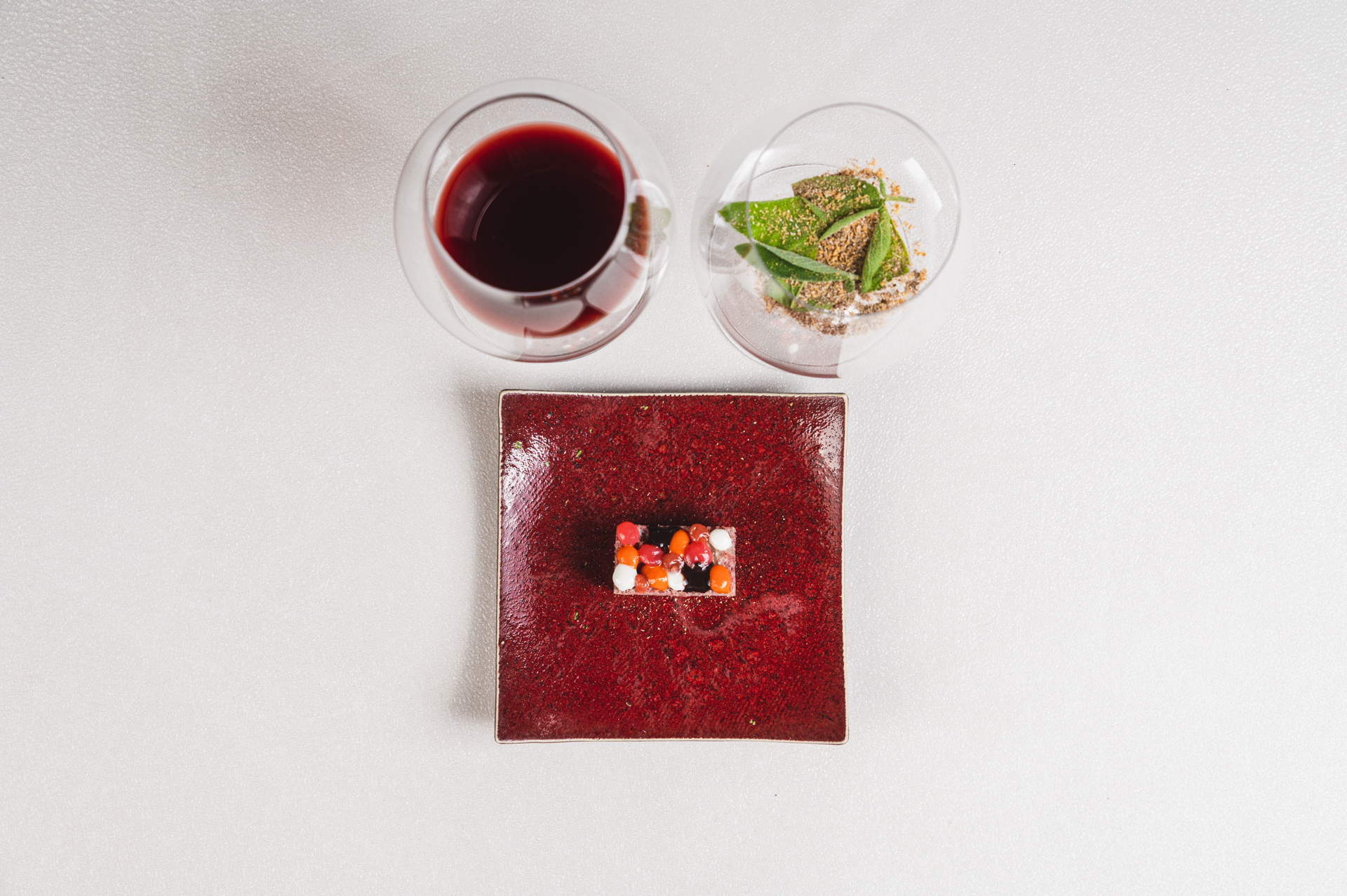 Simonato’s cooking begins long before the plate. His relationship with ingredients is deeply personal—he works only with products he knows, often sourced through direct contact with producers. Each element is selected with care, checked, tasted, and understood. Quality, here, is not a label but a process. His travels, from Japan to Spain and China, feed this constant search for new ideas, not through imitation, but through interpretation. What he brings back is never literal, but filtered through his own culinary language.