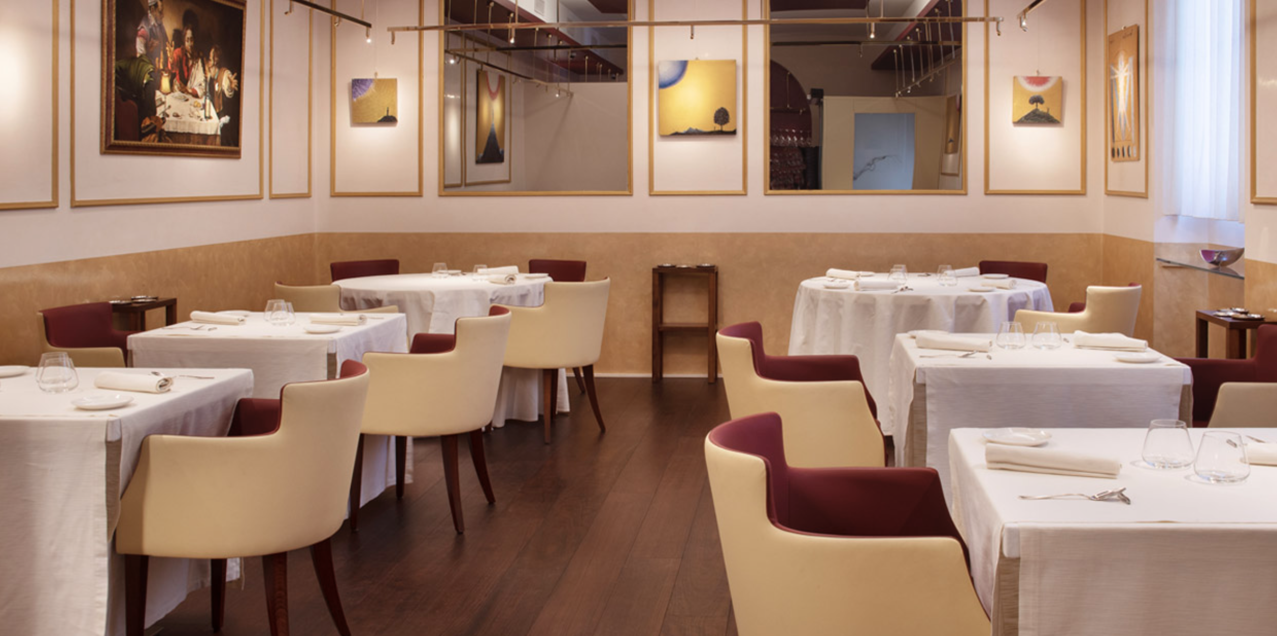The restaurant itself mirrors this approach. Designed by architect Maria Marseglia, the space moves between classic elegance and contemporary restraint. Two dining rooms unfold on the main floor, while a more intimate cellar below offers a different rhythm, quieter, almost introspective. The atmosphere is refined without being rigid, setting the tone for a cuisine that is equally thoughtful yet unpretentious.