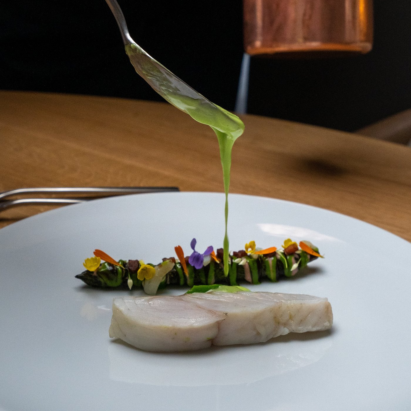 At the table, the experience unfolds through a single tasting menu concept, available in five, six, or seven courses, each one evolving with the seasons and the quality of the produce. “We go with the flow,” explains the chef. “With inspiration, with the region, with what nature gives us.” Menus change approximately every two months, allowing two distinct culinary expressions per season. Special occasions such as Valentine’s Day and Mother’s Day are marked by dedicated menus, always conceived with the same sensitivity.