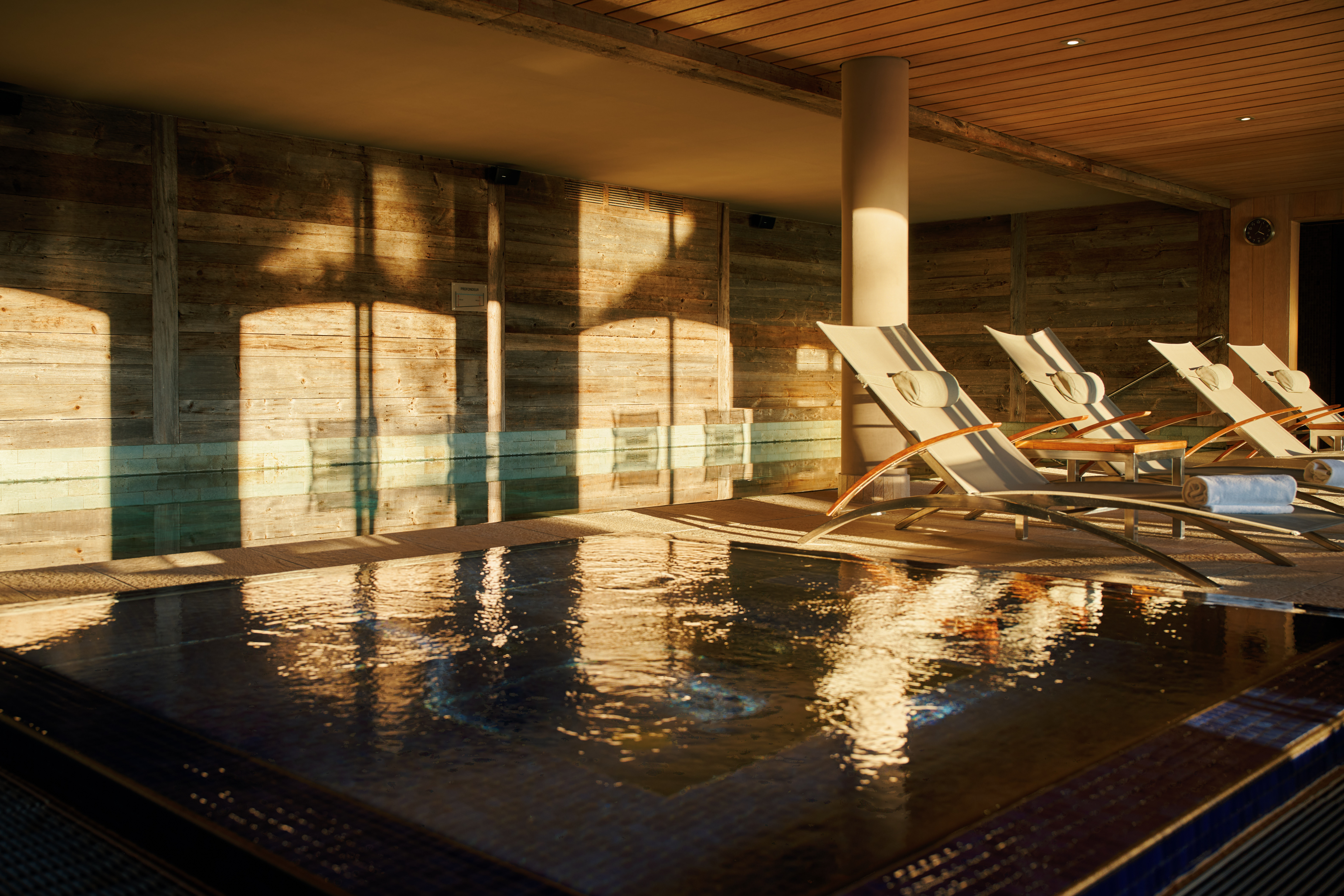 Guests move fluidly between the indoor pool and the heated outdoor pool, where warm water contrasts with crisp alpine air and rising steam dissolves into the sky. Sauna and hammam complete the experience, inviting physical release after days spent outdoors. Treatments are personalised rather than standardised, responding to individual needs and the demands of mountain life.