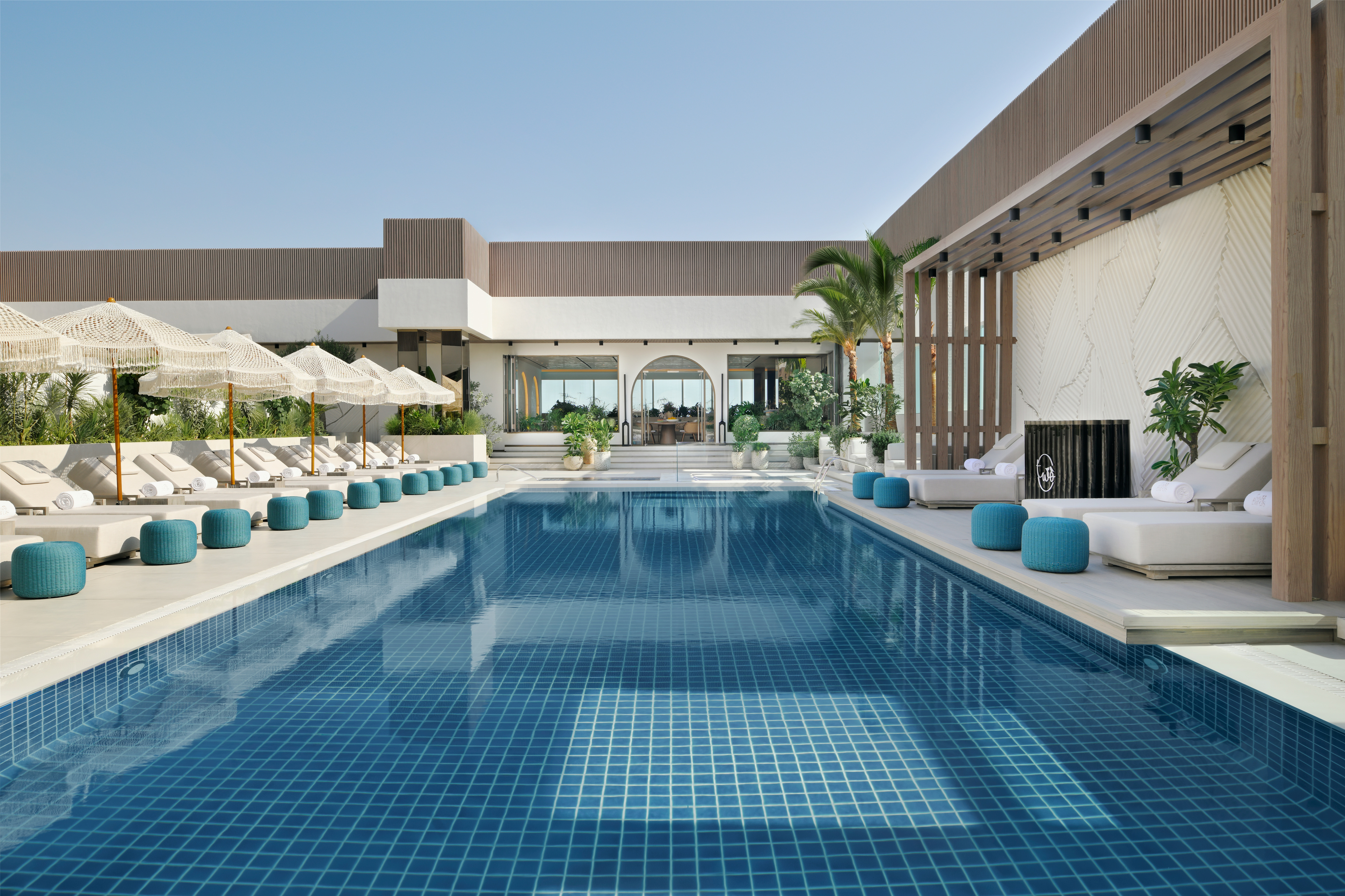 At the rooftop level, Two Birds One Stone introduces a different tempo. Combining restaurant, bar, and poolside lounge, it serves as a transition space between the working day and evening hours. The venue attracts a mixed audience of hotel guests, long-stay residents, and Dubai-based professionals, making it suitable for after-work gatherings, informal networking, or relaxed dinners without leaving the property. Its elevated position and open layout allow it to function as a social extension of the hotel rather than a destination nightlife venue.
