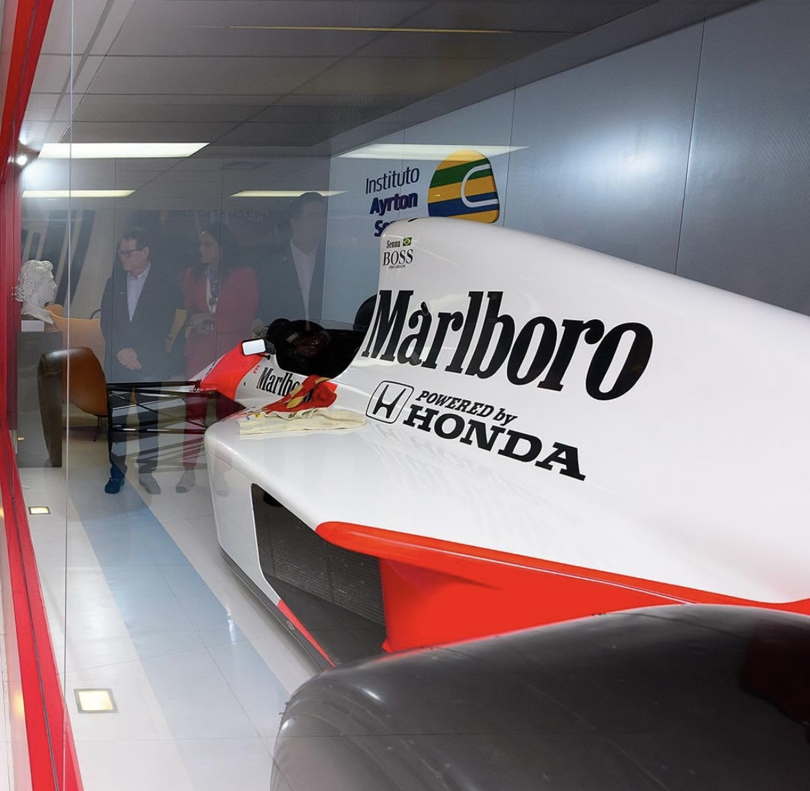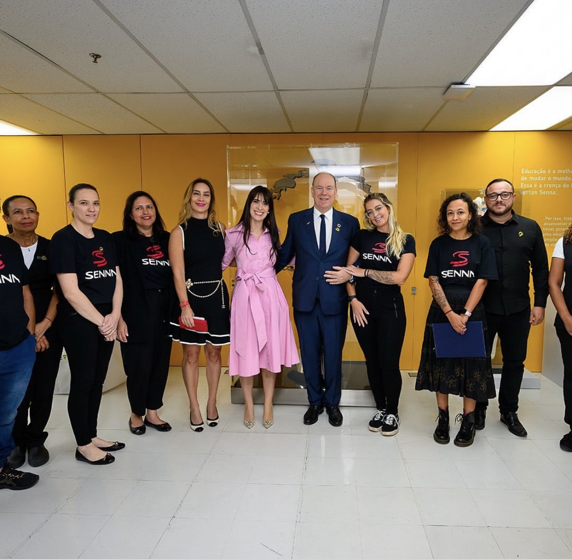 Following a brief welcoming address delivered in front of the famed McLaren driven by Ayrton Senna, the prince was greeted by Bianca Senna, chief executive of Senna Brands; Paula Lalli Senna; M. Bruno Senna; his nieces; and M. Ewerton Fulini, vice president of the institute.